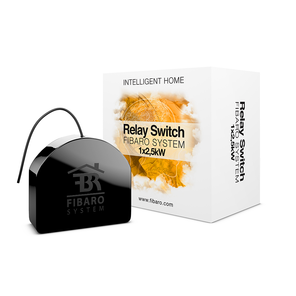 FIBARO Relay Switch is designed to be installed in standard wall switch boxes or anywhere else where it is necessary to control an electric device drawing up to 2500W.