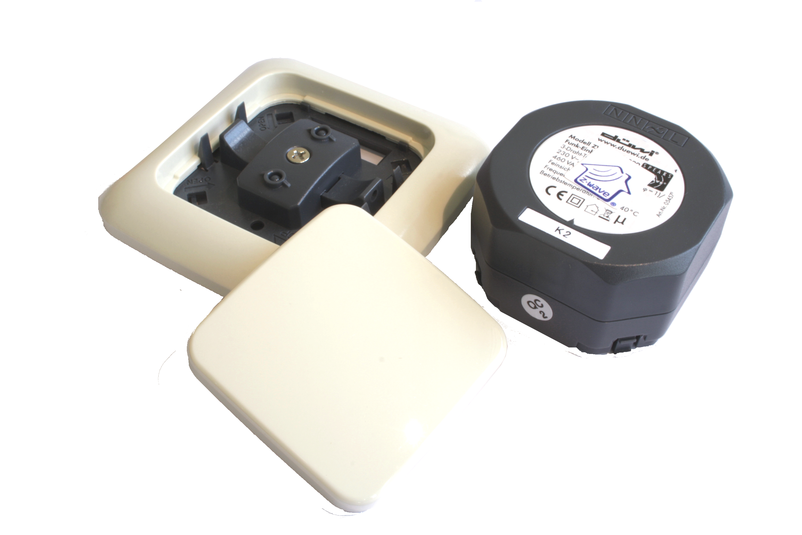 The Z-Wave.Me Flush Mountable Motor Control is a wireless actuator able to control 230 V powered motors for blinds and jalousies. The device is delivered as a complete set with flush mountable insert, paddle and mounting frame compatible to the design of the switching series DURO 2000 SI in color pearl white from Busch Jaeger. The paddle of the device is used to control the device itself but can also be configured to activate scenes in a central IP gateway or controller. The status of the motor control is indicated on a dual color LED for test purposes and every status change is - if configured - reported to a central IP gateway or controller. The function of the local paddle can be configured as detached from the local operation. In this local control different devices are controlled by Z-Wave while the local actuator is controlled by other devices using Z-Wave. This device is designed for a 3 wire system and needs a neutral wire in the wall box.