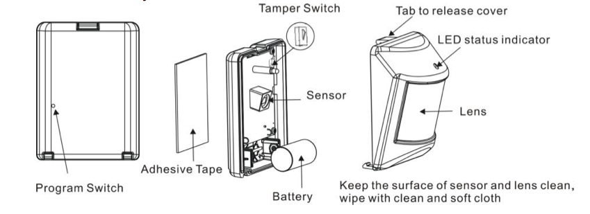 This motion detector (PIR = passive infrared receiver) detects the presence of a person in a room. The units send information to a controller or any other associated Z-Wave device. The device is protected by a tamper switch that will issue an alarm when the enclosure if opened. Beside the Motion detection the device also reports the ambient temperature.