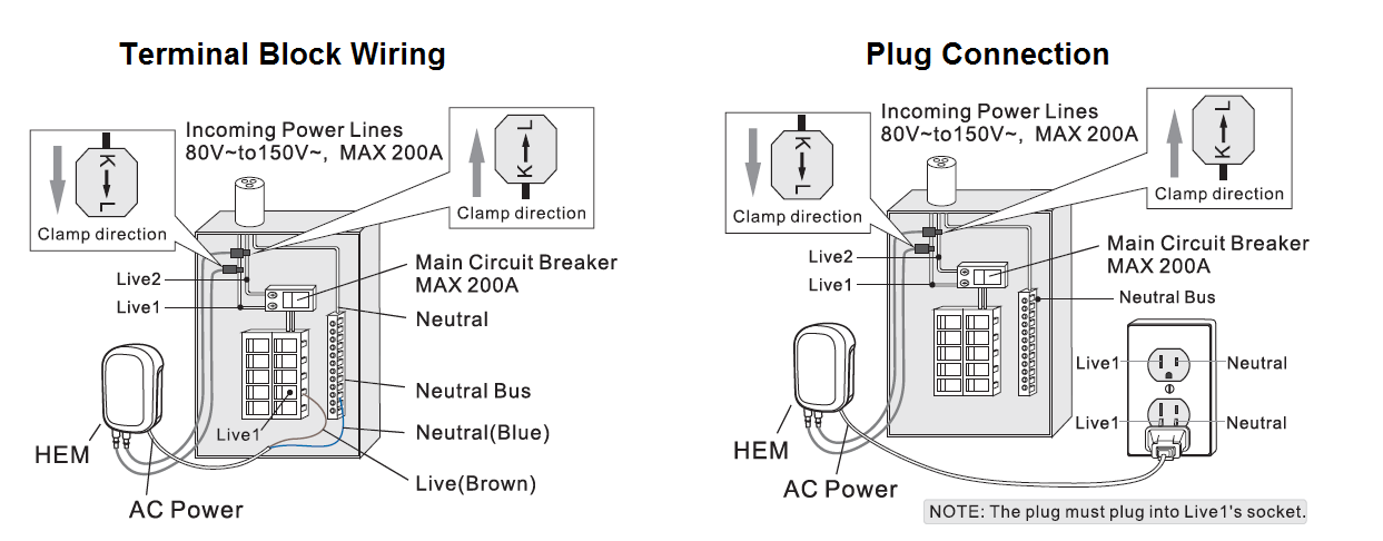 If the circuit boxes is made of metal the radio signal strength may be reduced. In this situation it is recommended that the main body of the meter be affixed outside the circuit box. This will improve the radio signal strength. The Home Energy Meter G2 has been weatherized to the international IP44 standard so that it is resistant to rain and snow when placed vertically with the wires protruding from the bottom of the unit.