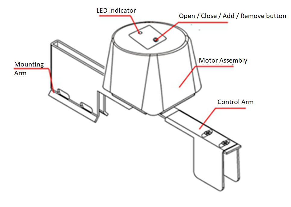 - Local operation by simple pushing the red button. Any push of the button will result in a change of the status from open to close or vice versa.