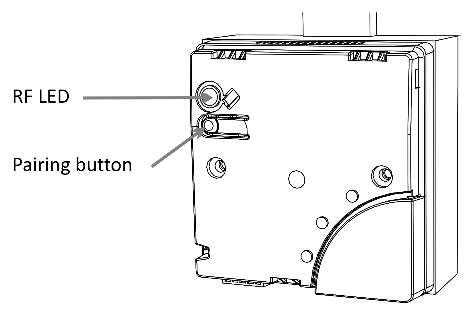 Press and hold the pairing button on the unit until the RF LED starts flashing at a fast rate. Then release the button. On successful inclusion the RF LED will stop flashing.