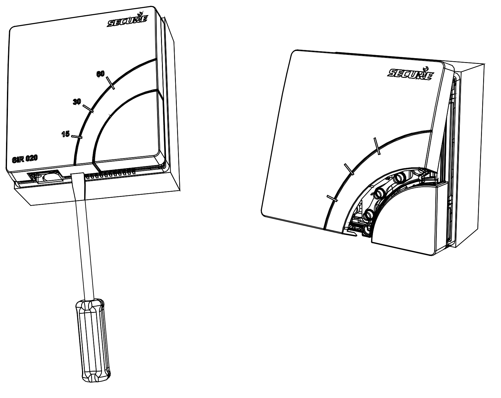 1. Unpack unit and remove front coverTake the SIR out of its packaging and then remove the front cover gently, using a slotted screwdriver in the notch, as shown in the picture below: