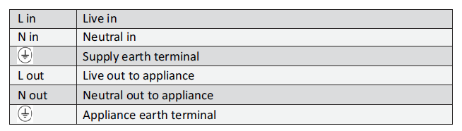 Use twin-and-earth cable with a maximum conductor size of 2.5mm2 single conductor for the incoming supply to the SIR. Use a suitably rated three-core flexible cable to connect the SIR to the appliance to be switched. For appliances rated up to 2kW use minimum 1.0mm2 flexible conductors. For appliances rated up to 3kW use minimum 1.5mm2 flexible conductors. Heat resistant flexible cable must be used if connecting the SIR to an immersion heater.