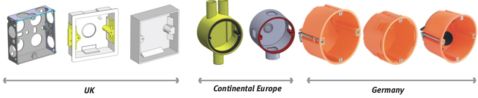 For flush wall mounting - SIR can be mounted directly to any standard flush mounting single-gang wiring box with a depth of 25mm for UK (BS 4662), or 35mm for Continental Europe (DIN 49073).