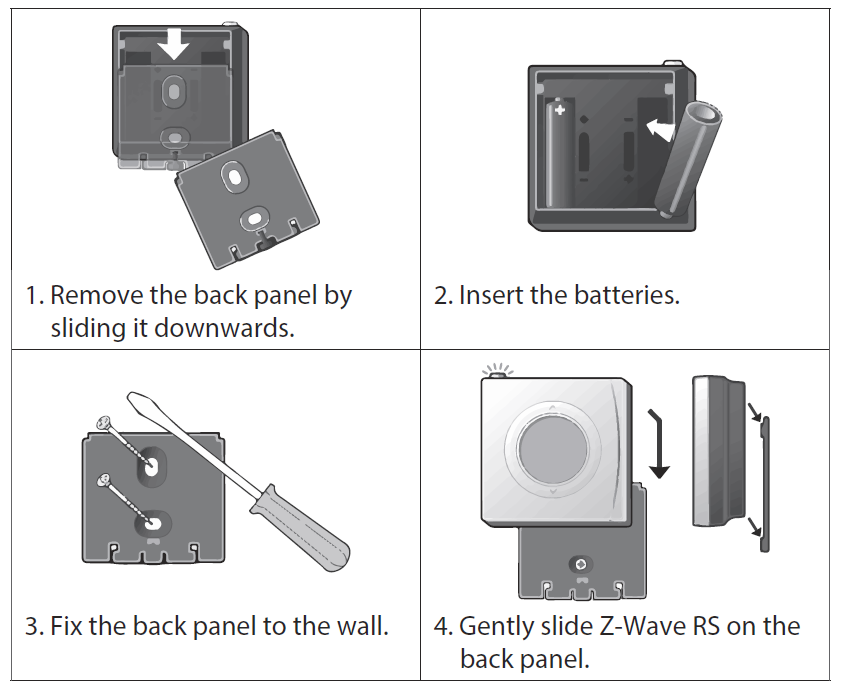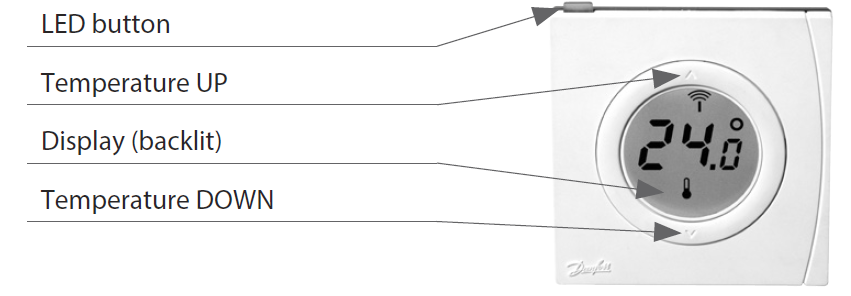 Z-Wave RS is a battery operated temperature sensor. When included into Z-Wave wireless network, its buttons can also be used to control the heating system.