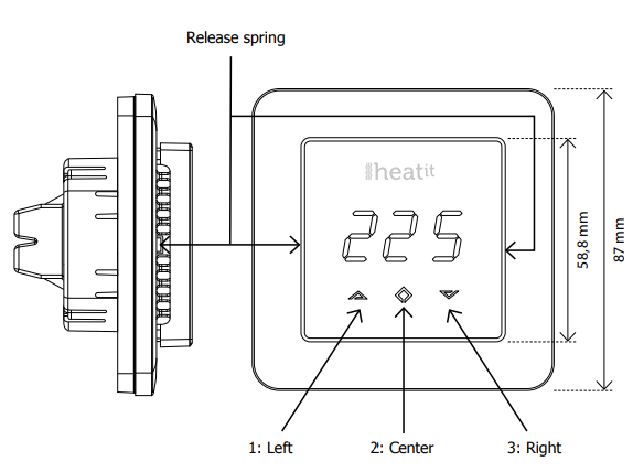 The display will show the actual room temperature. By pressing the buttons, the display will show the set value. Heatit Z-Wave is equipped with a single-pole switch.