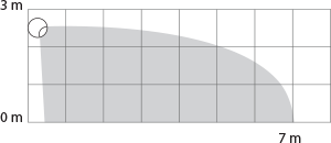 Actual range of the sensor can be influenced by environment conditions. Should false motion alarms be reported, check for any moving objects within the sensor’s detection area, such as trees blowing in the wind, cars passing by, windmills. False motion alarms may be caused by moving masses of air and heat as well. If the device keeps on reporting false alarms, despite eliminating all of the above-mentioned factors, install the device in another place.