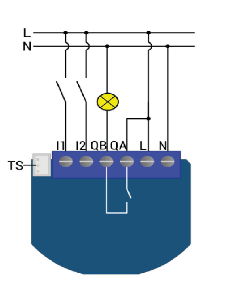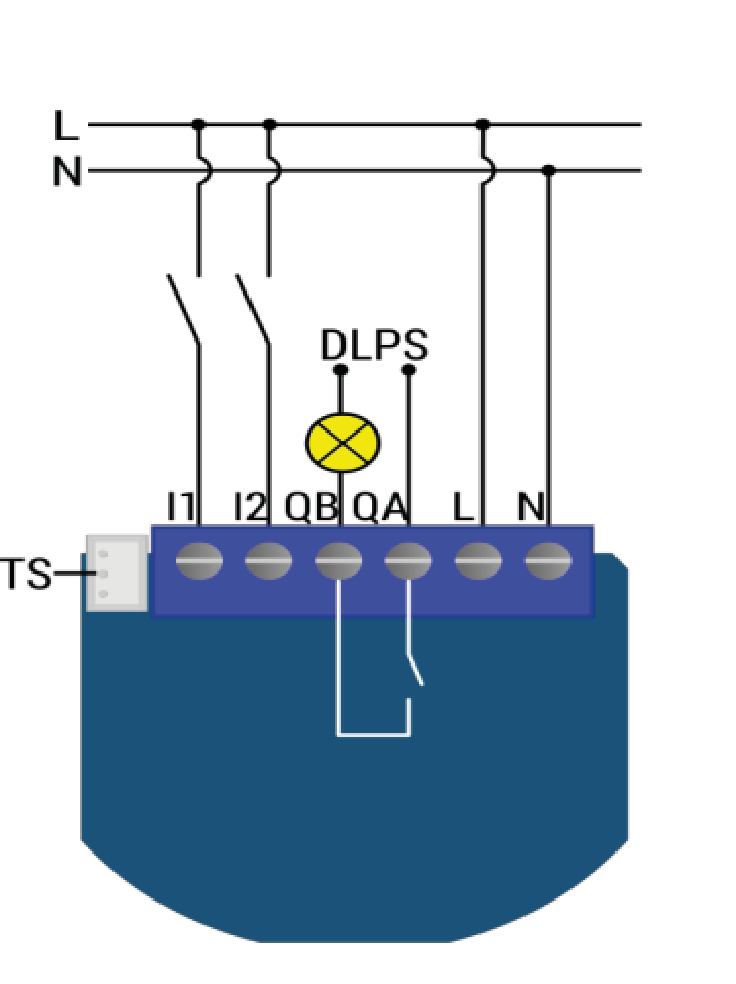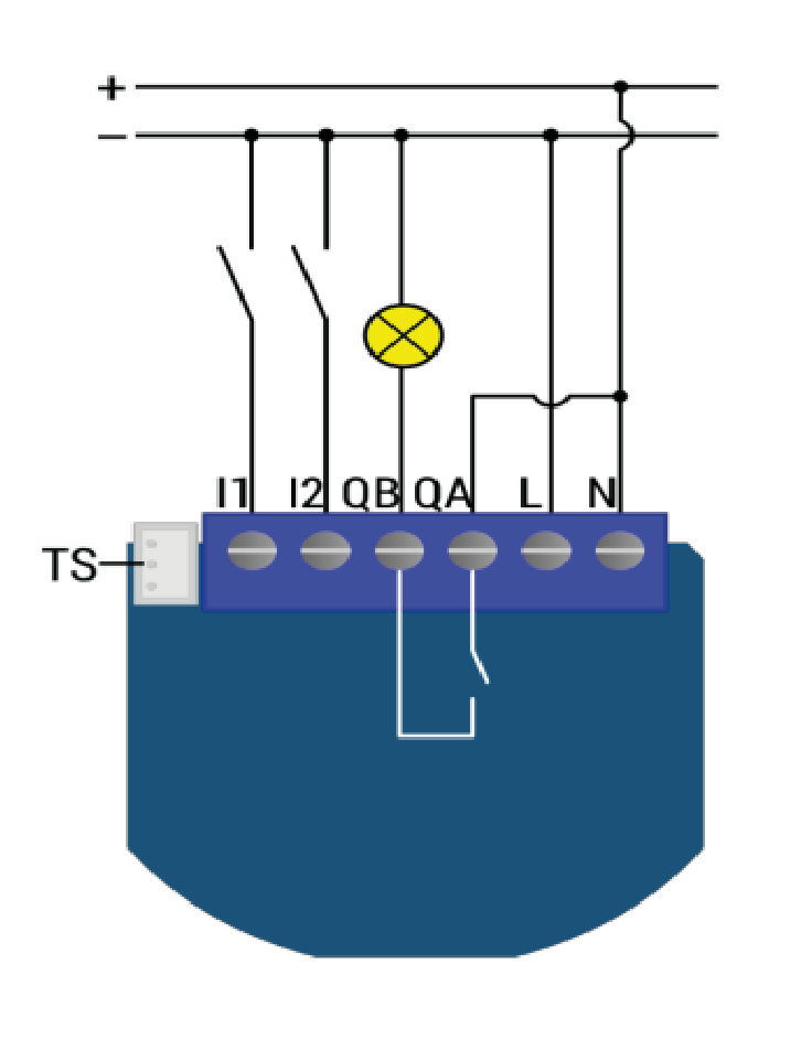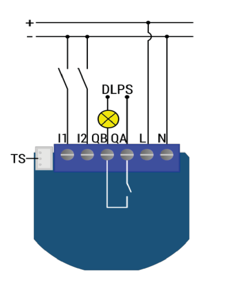 Qubino Flush 1D relay with voltage free (dry contact) output contact.