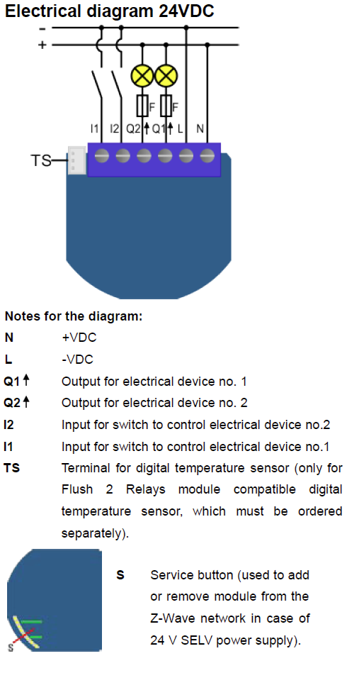 Flush 2 relays module is used for switching on or off two electrical devices (e.g. lights, fans, etc ...). The module can be controlled either through Z-Wave network or through the wall switches.