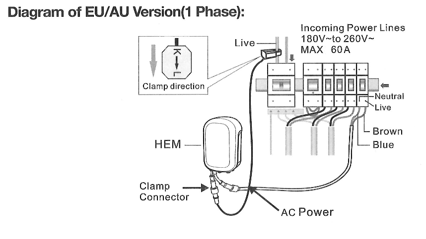 If the circuit boxes is made of metal the radio signal strength may be reduced. In this situation it is recommended that the main body of the meter be affixed outside the circuit box. This will improve the radio signal strength. The Home Energy Meter has been weatherized to the international IP43 standard so that it is resistant to rain and snow when placed vertically with the wires protruding from the bottom of the unit.