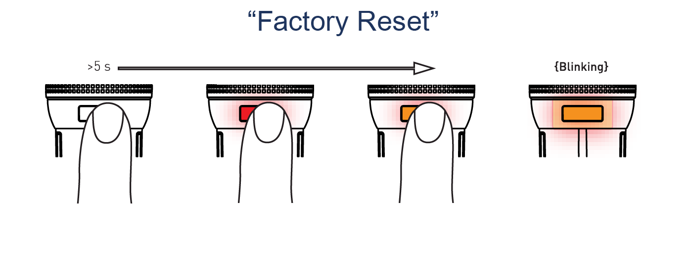 To reset, long press during more than 5 seconds then release. Please use this procedure only when the primary controller is missing or otherwise inoperable.