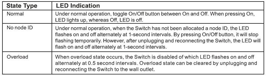 This smart energy plug is able to detect current wattage (5-3000W) and overload wattage (3010-3300W) of connected lights or appliances. When detecting overload state, the switch will be disabled and its on/off button will be lockout of which LED will flash quickly. However, unplug and re-connect the switch and it will reset its overload condition to normal status.