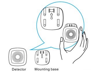 Note that the mounting base shall be up as the direction of arrow shown in the graph. Finally, hang the detector into the mounting base.