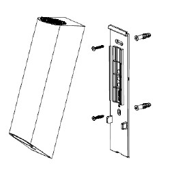 1. Use the backplate as a template to mark and drill the position of two mounting holes on the wall. Fix the backplate to the wall using the plastic wall plugs and fixing screws provided