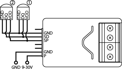 You can connect up to 2 analog sensors to IN1/IN2 terminals.