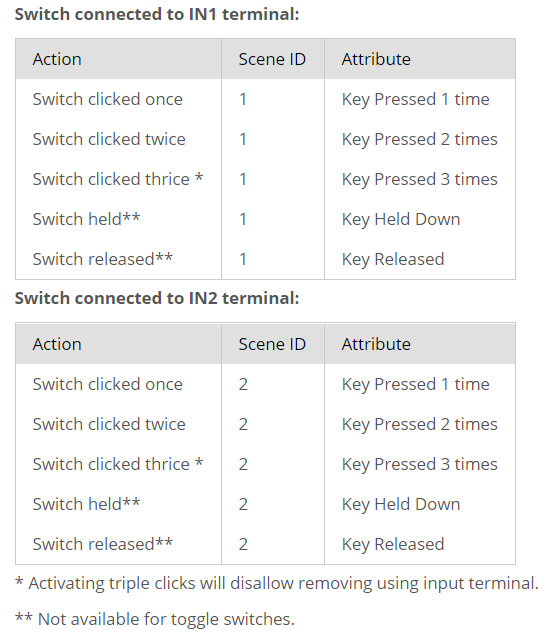 The device can activate scenes in the Z-Wave controller by sending scene ID and attribute of a specific action using Central Scene Command Class.