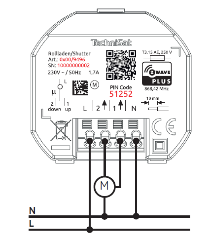 5. The TechniSat Shutter will be added to your Z-Wave network within 10 minutes after re-enabling electrical power.