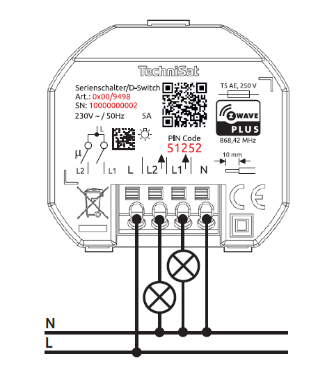 Designed as a drop-in replacement for your double wall switch from leading brand manufacturers, TechniSats Double-Switch integrates your wall switch into the Smart Home future.Featuring Z-Wave SmartStart and S2 security for easy installation and secure operation, your wall switch can now be controlled from your Smart Home as well. Full manual operation can trigger central scenes via multiple button clicks Short circuit and overload protection monitoring