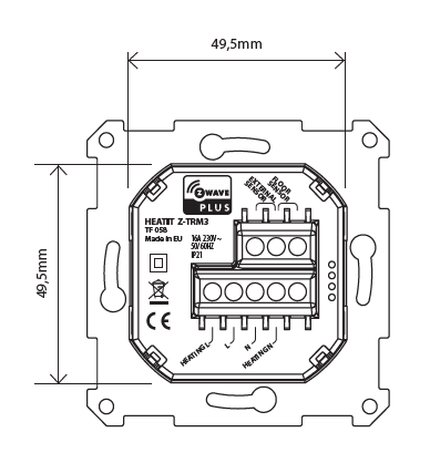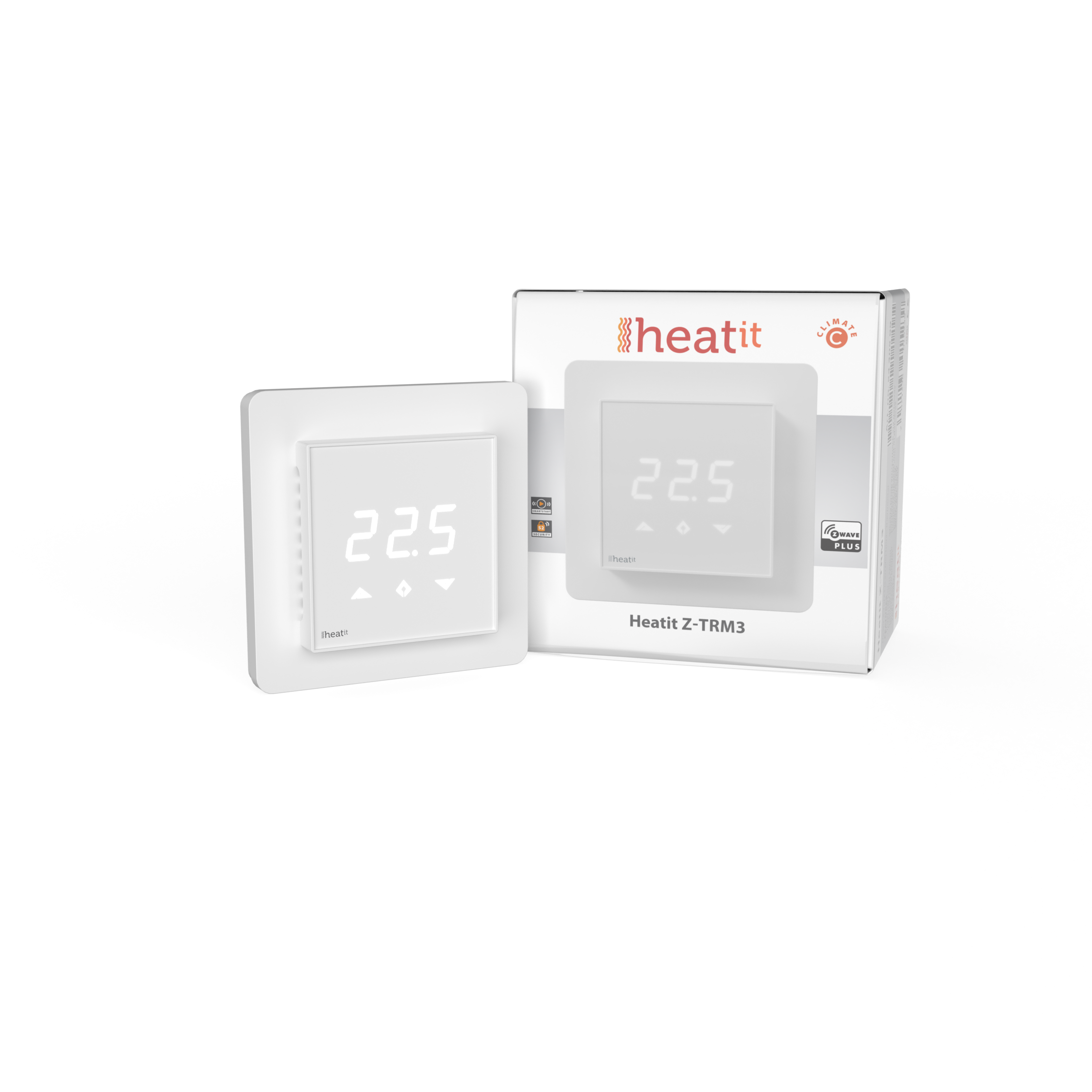 Heatit Z-TRM3 is an electronic thermostat for electrical floorheating, designed to be mounted in a standard flush box. Thethermostat has a built-in Z-Wave chip that can be connected withHome Automation systems. Heatit Z-TRM3 has SmartStart. Thisfeature allows the user to include all devices with SmartStart byscanning the QR codes on the devices. On startup all the deviceswill automatically be included in the gateway (requires SmartStartcompability). This saves the installer a lot of work.Heatit Z-TRM3 is equipped with a single pole switch and fits intoSystem 55 frames. The thermostat can withstand a load of max16A /3600W at 230V. At higher loads the thermostat must controla contactor. The thermostat may be connected to two wiredexternal sensors. The thermostat has the capacity of up to 5associations (relays, wall plugs etc.).The thermostat is designed for electrical heating. It may beused for waterbased heating if the thermostat is linked with theHeatit Z-Water.