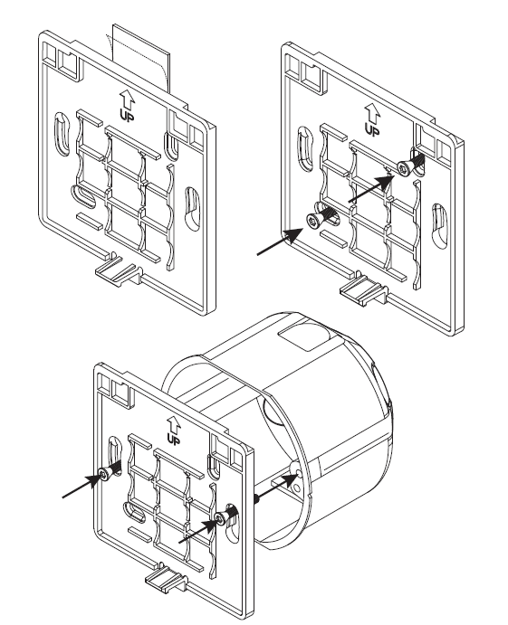 Use a large flathead screwdriver to remove the back cover. Fix the unit to the wall by double-sided tape, screws or installed on top of a Euro wall box.