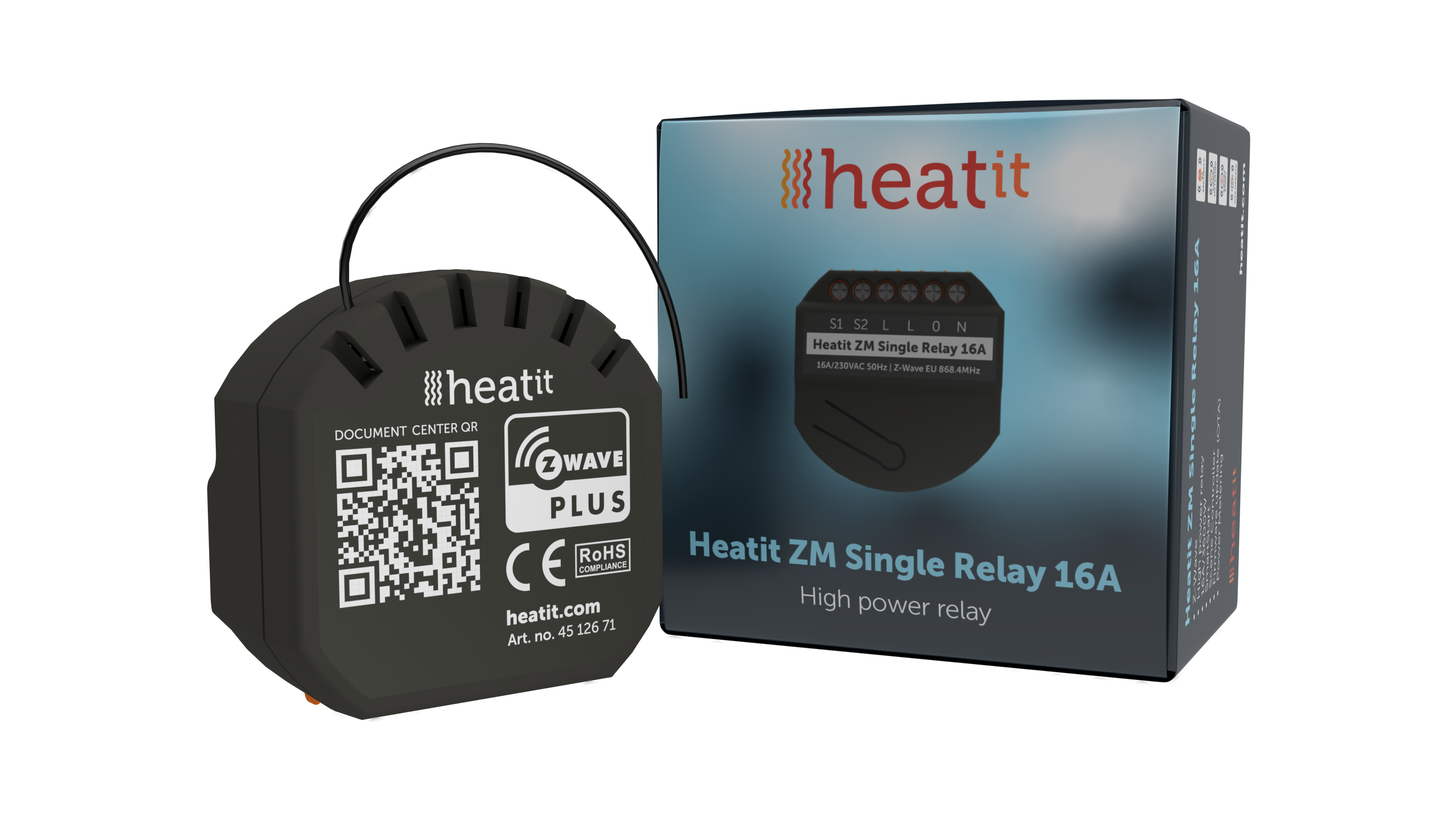 Heatit ZM Single Relay is a high power relay for inwall installations. The relay allows you to control connected devices either through your Z-Wave network or via a wired switch. The module is equipped with a 16A relay and has a scene controller functionality.