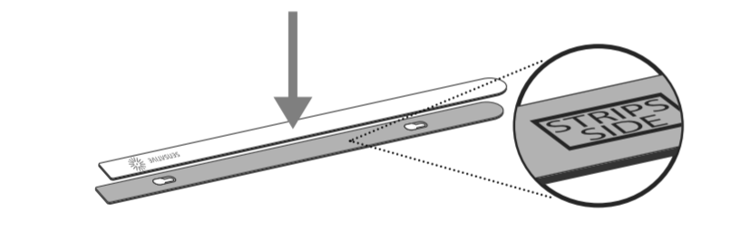 Remove the protective tape from Strips adhesive. Mount Strips Comfort on the marked Strips Side of the mounting plate as illustrated above (b).Use the plate to mark the holes, then take included screws and mount Strips to its location.