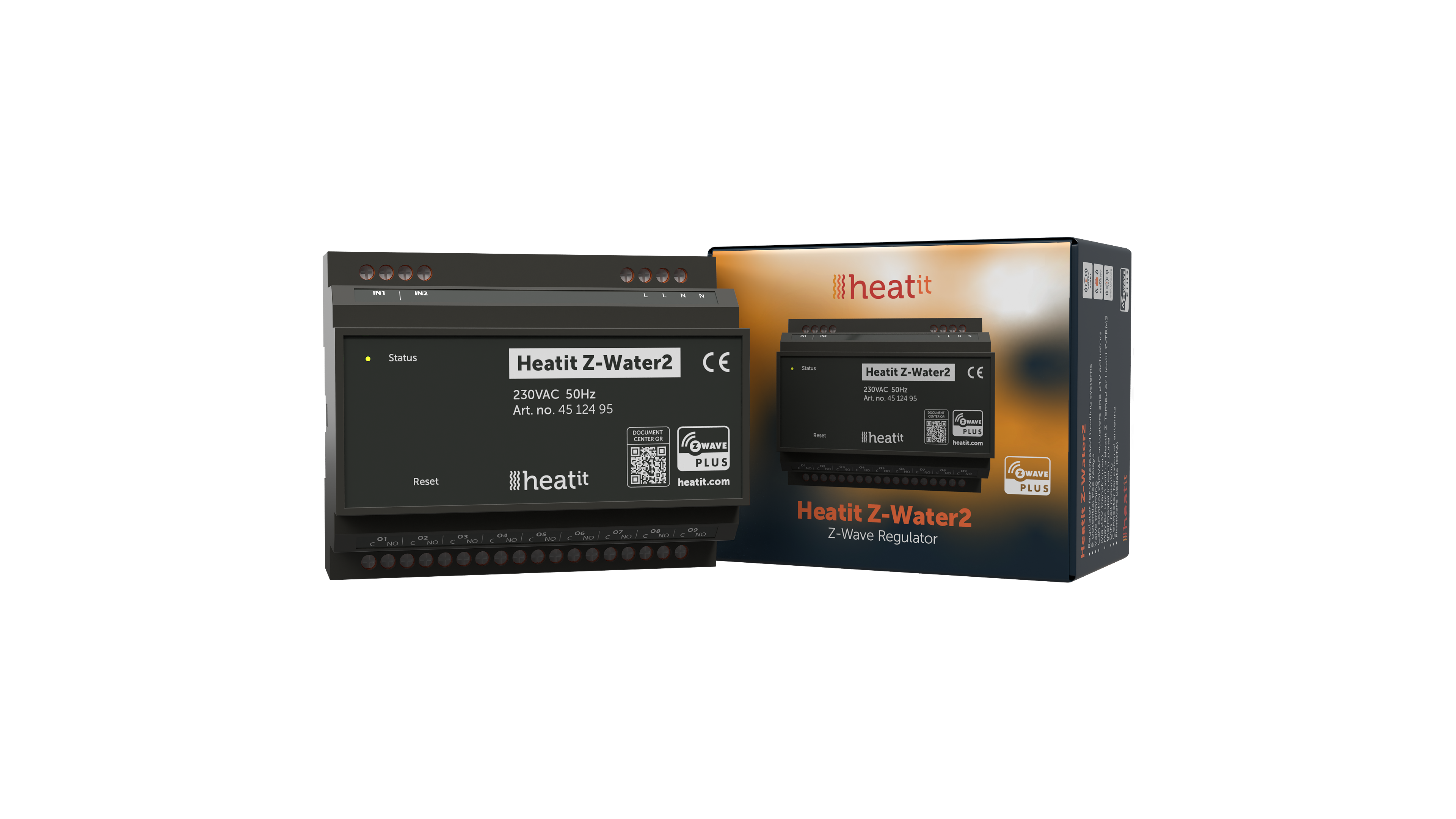 Heatit Z-Water2 is a DIN-rail regulator for controlling waterbased heating systems. The module clips right onto a DIN-rail and allows you to control your waterbased heating through your Z-Wave™ network.