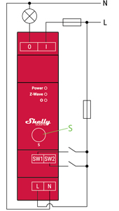 The Device is a DIN rail mountable smart switch with power measurement. It controls the on/off function for one electrical device with a load up to 16 A. It is compatible with switches (default) and push-buttons.