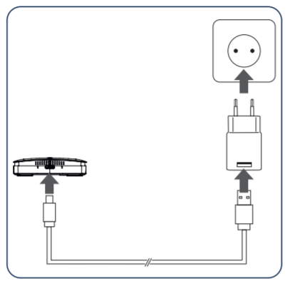 Connect the Micro-USB cable to a AC adapter and to the air quality sensor and afterwards to a power outlet.
