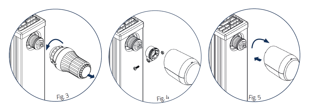 1. Unscrew old thermostatic head completely, loosen fastening and pull it off the valve.