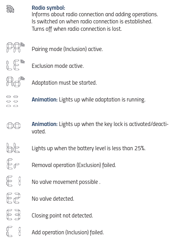 After adding (inclusion), the LED display shows an animation and the thermostat moves to the mounting position. Subsequently, the LED display shows “Ad”.