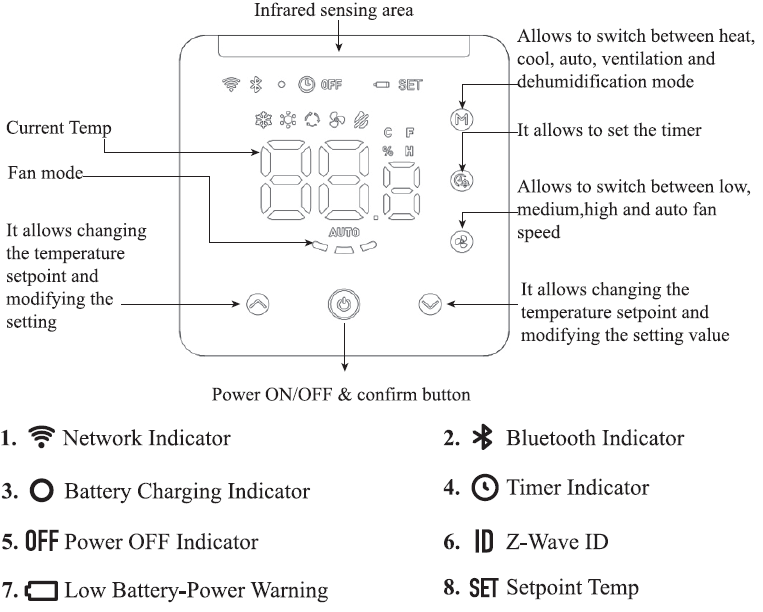 MCO Home IR2900 is a Z-Wave 800 series thermostat which is compliant to Z-Wave-to-IR bridge to control split air conditioner by receiving Z-Wave command and converting to Infrared command. IR2900 can control various brands and models of split air conditioner globally combination with the all-around built-in and cloud-stores IR database. With distinct display, you can intuitively read the room temperature with setting buttons to have a peace-in-mind smart home control experience.