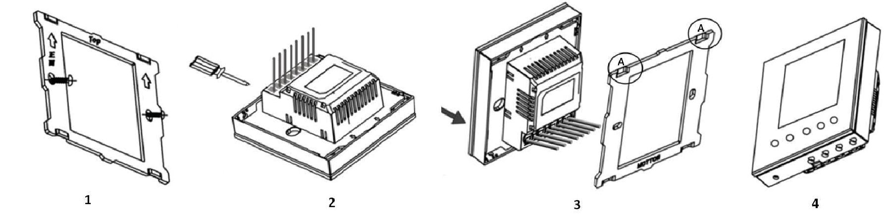 MCOHome Fan Coil Thermostat is a Z-Wave enabled device for indoor temperature control. To protect yourself and others from danger and to protect the device from damage, please read the safety information before using it. You can find further information in the device manual.Step 1: Remove the steel frame from the device, and secure it onto the junction box with two screws.