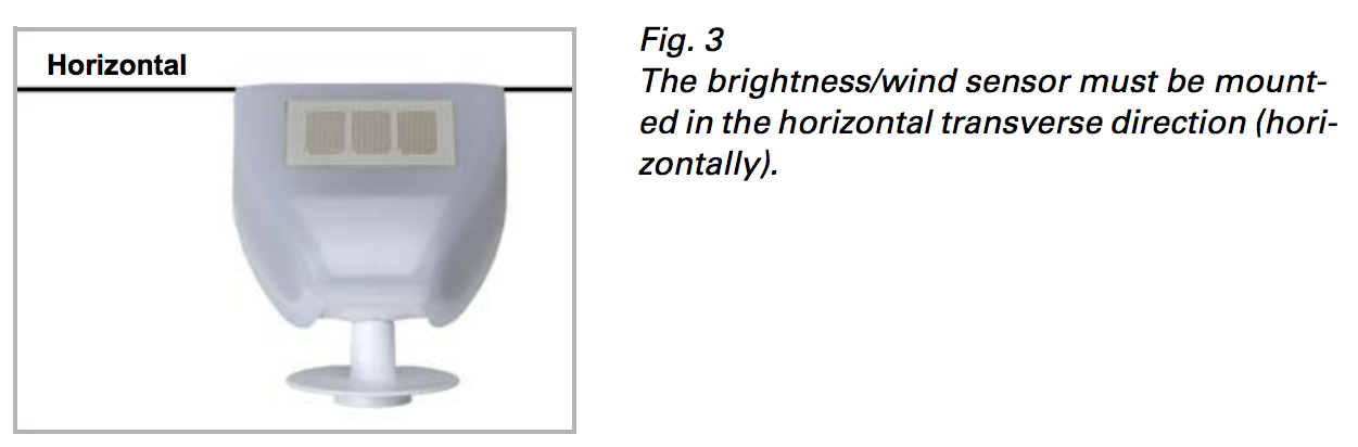 3. The measured wind value and thus all other wind switching outputs may only be supplied 60 seconds after the supply voltage has been connected. After the auxiliary voltage has been applied, the device will enter an initialisation phase lasting a few seconds. During this phase no information can be received or sent wirelessly