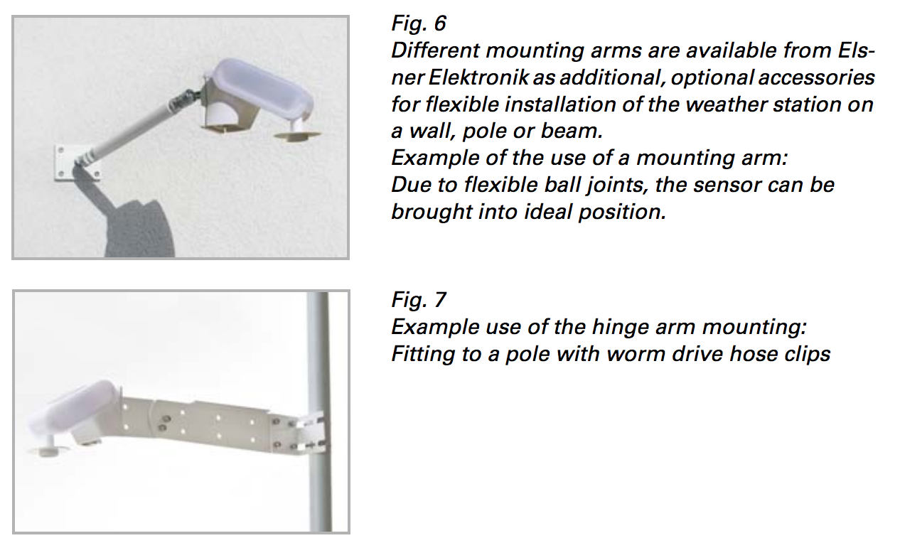 Select an assembly location at the building where sun and wind may be collected by the sensors unobstructedly. The sensor may not be shaded by the building or for example by trees. At least 60 cm of clearance must be left all round the device. This facilitates correct wind speed measurement without eddies. The distance concurrently prevents spray (raindrops hitting the device) or snow (snow penetration) from impairing the measurement. It also does not allow birds to bite it.