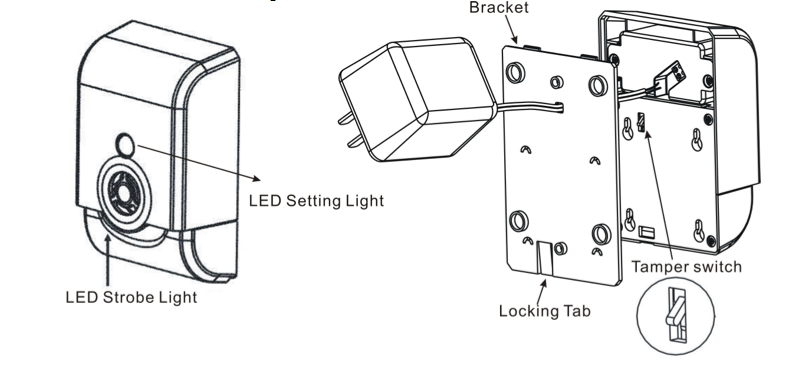 1. Remove the bracket from the siren by pressing the locking tab and then gently slide up the siren.